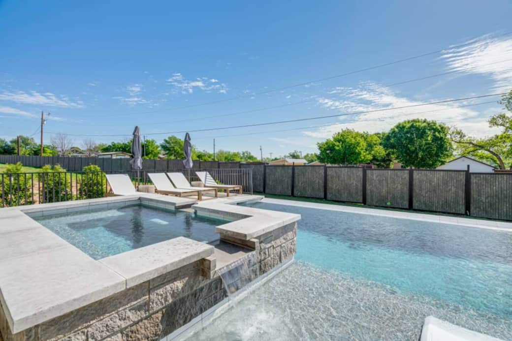 Step outside to your private oasis: a sparkling sports pool, a relaxing large spa, and a spacious covered patio designed for lounging and entertaining.